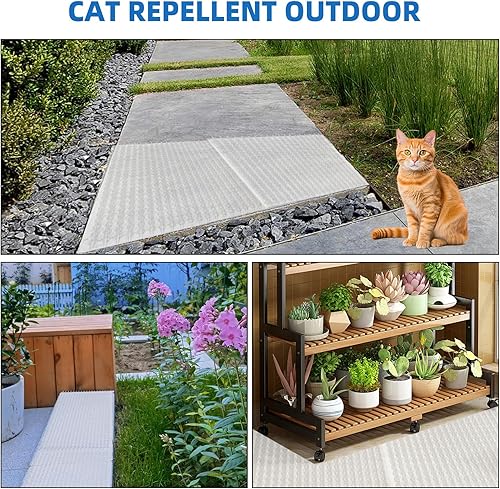 【 Humane spikes mat】Unique Transparent design is hidden from animals, effectively scaring them back when they encounter it. No more animals jumping over your scat mats!Prevent other exotic animals from damaging your plants, balcony furniture, garden, cars