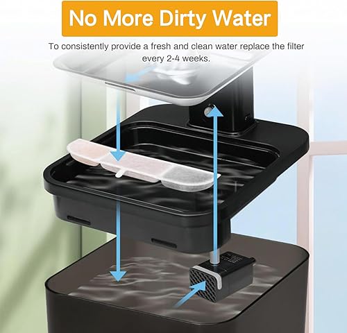 For Optimal Use: Soak the filter for 5 minutes and rinse for 30 seconds before use. To maintain the filtering effect, recommended to replace the filters every 2 weeks. If you have multiple pets, it is recommended to clean the fountain and change the filter more often.