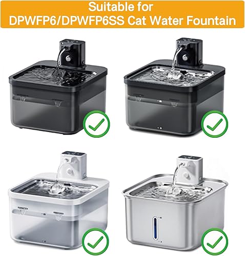 Compatible Cat Fountain: This cat water filter replacement only compatible with DownyPaws wireless cat water fountain, battery operated automatic pet water fountain. Fit model DPWFP6.