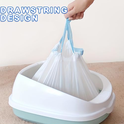 Premium Quality: These cat drawstring litter liner bags are made of super thick 1.5 mil and soft pure LDPE material, flexible and durable, which are offering excellent stretch-ability, characteristics and resistance to puncture, leakage and tearing