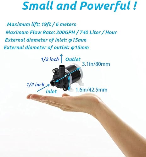 High Efficiency: This 12V brushless DC centrifugal water pump from VANSUNA is an ideal choice for efficient water circulation. With a power consumption of 5-24 watts, it boasts a maximum flow rate of 740 liters per hour and a maximum lift of 6 meters