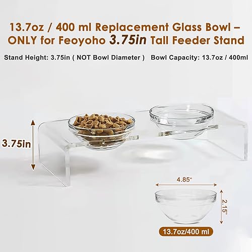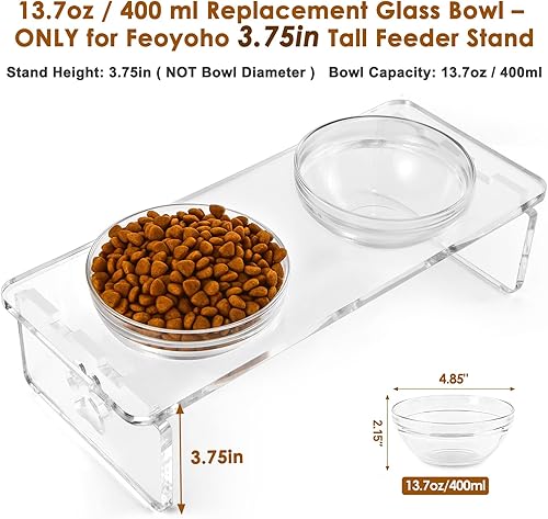 Perfect Compatibility – Replacement glass bowls designed ONLY for Feoyoho feeder stands (3.75in, 5.5in, and 7.2in tall). Please choose the size that matches your stand.