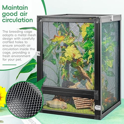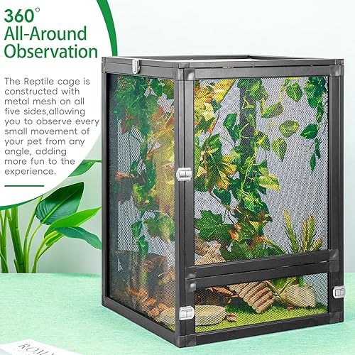 1. 360° All-Around Observation: The Reptile cage is constructed with metal mesh on all five sides, allowing you to observe every small movement of your pet from any angle, adding more fun to the experience.