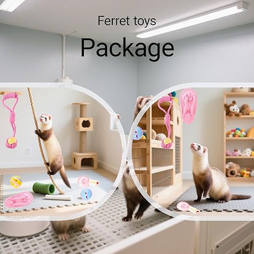 Unleash a World of Fun for Ferret : Dive into our 13-piece ferret toy extravaganza! With 4 rugged chew toys, 3 interactive plushies, 4 colorful springs, and 2 jingly bell balls, boredom in the cage becomes a thing of the past.