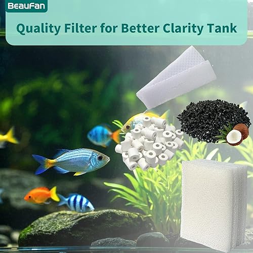 Package Contents: 4 foam pads, 4 tarpaulins, 4 activated carbons and 1 ceramic ring. It is recommended to replace the filter media every 2 to 4 months to extend the lifespan of the aquarium