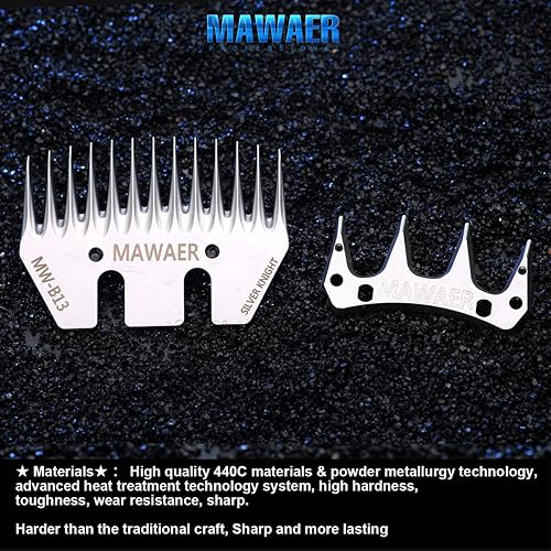 Universal replacement blades, compatible with many brands,MAWAER Gold Knight 13 Tooth Pet Livestock Shearing Replacement Blades for fit Oster, GDJOB,TAKEKIT,BEETRO,Dragro,Lister, Heiniger Sheep Clippers. ↑ Tips: Any brands mentioned in the above , just show the compatibility and for reference ,It is not our products trademark. Our Brand is MAWAER.