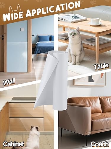 【Sturdy and Stable】It is made from thick PVC material, offering high toughness and enhanced sturdiness to protect your furniture from cat scratches for a longer time. It offers strong adhesion, allowing it to conform better to the furniture surface, making it less likely to fall.