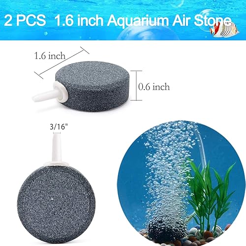 【2 Air Stone Cylinder】Each one measures for 0.6" D x 1" H, made of mineral material via sintered with a high temperature, built solidly, tiny but enduring, and can produce a good amount of dense bubbles and continual bubbling, a great way to increase oxygen solubility in your aquarium and enliven aquatic lives. Ideal for small fish tanks or aquariums