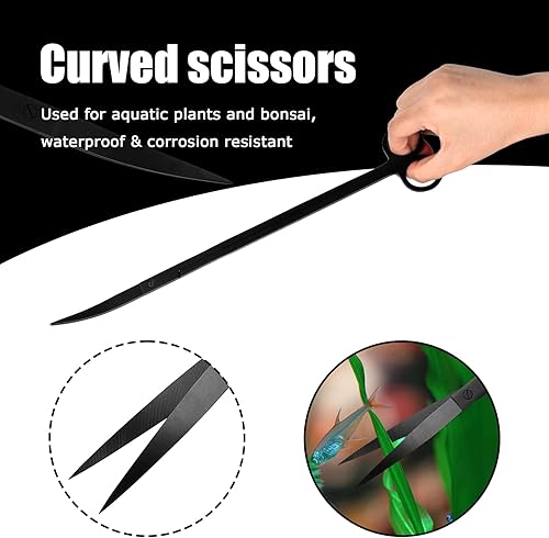 【Extra Long Design】This comprehensive aquarium aquascape tool kit includes 1 curved scissors (13.8in), 1 straight tweezers (15in), 1 curved tweezers (15in), and 1 sand spatula (15.3in). Perfect for regular maintenance tasks such as feeding, trimming, planting, and adding fish tank accessories with ease.