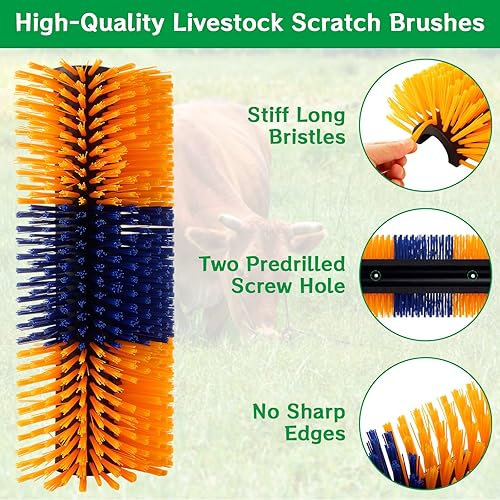 Size: You will receive 1 PC livestock scratching brush and screws for installation. Our horse brushes for grooming are 17.4 inches long and 7.8 inches wide, and the bristles are 2.4 inches long, making them the perfect size for livestock use