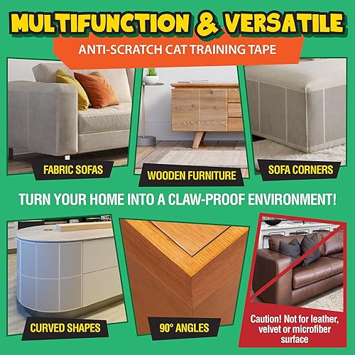 [Fabric Compatible] - Our couch cat scratch protector is safe for your cats and furnitures. They are suitable for most fabric surfaces. Not recommended for real or faux leather, microfiber or velvet.