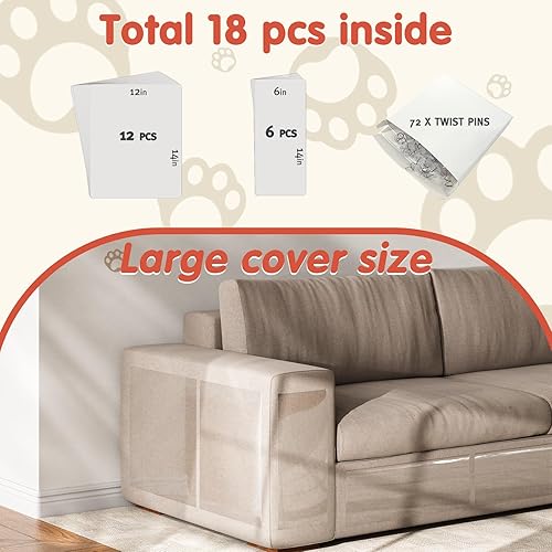 Large Cover Size: There are total 18 pcs cat tape for furniture and 72x twist pins help to fix, 12 pcs 17" x 12" + 6 pcs 17" x 6" It's enough to cover most furniture surfaces