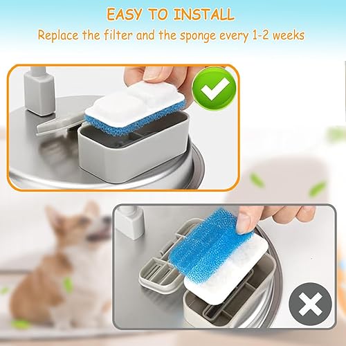 【Multi-Filtration System】 The filter Composed of a cotton layer, activated carbon and ion exchange resin for effectively removes heavy metals, improves the taste of drinking water and helps pets drink more water. Pre-filter sponge makes it better at filtering hair; pump sponge prevents debris from entering the pump and helps prolong the life time of water pump.