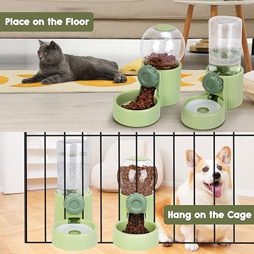 【Automatic Food Water Dispenser 】: Our food water dispenser set will save time instead of having to put food in non-stop, they are very convenient that you don’t have to refill the cat food and water daily. They use the gravity system like the top loading water dispenser consistently providing fresh water and food, helping keep the water somewhat cleaner. The feeder has a large food outlet and 75° ramp, so food can be smoothly filled. No electricity is needed.