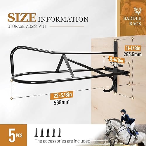 Precise Dimensions & Easy Installation: With an overall length of 22-3/8 inches, the mounting bracket stands 11-1/8 inches high and 8-5/8 inches wide. It fits most saddle sizes. Comes with installation accessories for a hassle-free setup. No instruction included