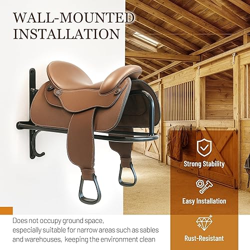Premium Steel for Durability: Crafted from high-strength steel, this saddle rack boasts a stable structure that resists deformation. It can safely bear the weight of saddles and equestrian accessories
