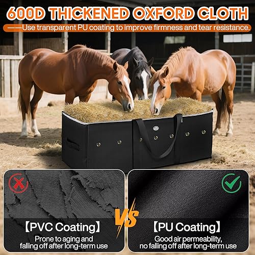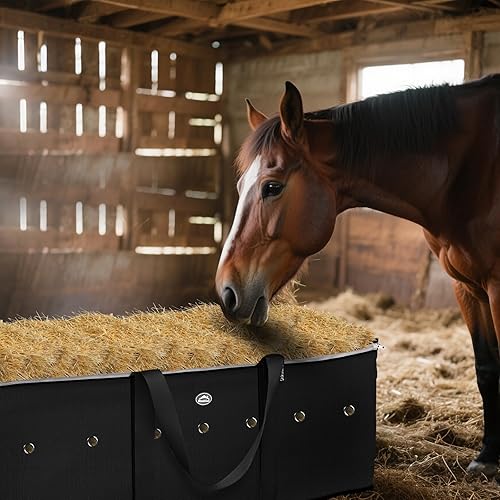 【One Bag for Multiple Uses】When folded, it is only the size of an A4 paper and can be stored at any time in any location, such as a stable, a truck or an RV. In addition to hay storage, it can also be used for feed transportation, moisture-proofing of camping equipment, and vehicle emergency kits, etc. It is highly practical.