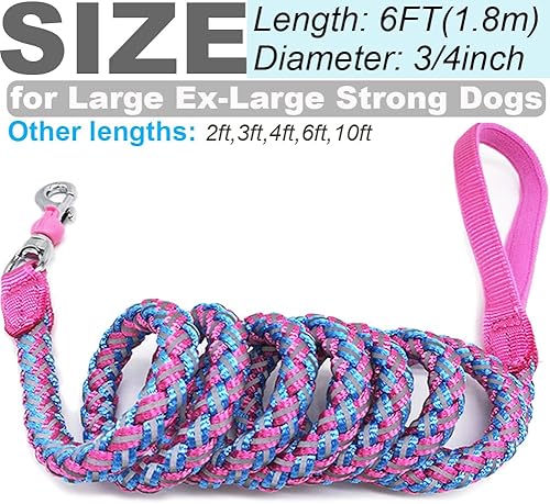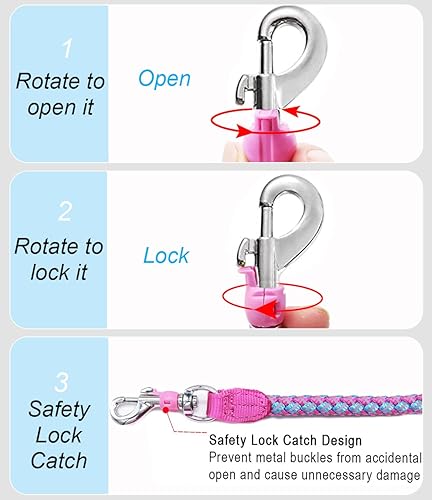 Upgraded Strong Clasp with SAFETY LOCK CATCH: Large swivel snap, with a locking safety lug for the snap release. Prevent metal buckles from accidental open to ensure that your dog cannot slip out of the rope leash while you’re jogging outdoors with it