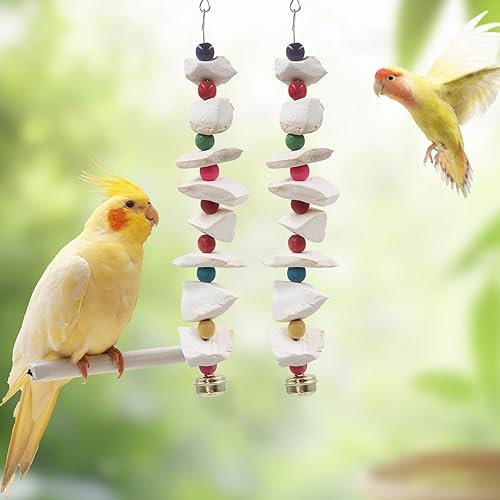 【Natural and Safe】: Made from high-quality, non-toxic materials, these bird toys include natural cuttlebone to support healthy beak grinding. The safe, natural ingredients ensure your bird can play and chew with confidence.