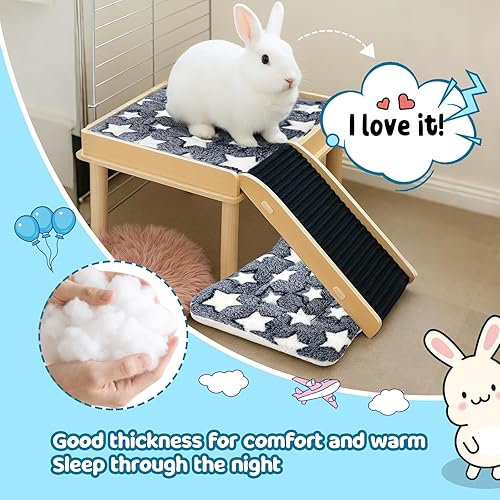 【Widely Applicable】There is a variety of usages of these bed mats. Put in the cage/castle/loft/other hideouts to give your guinea pig a warm and cozy home. Put under the wooden bridge as a little cushion. The rabbit will enjoy stretching out and sleeping on it. Or hide under the side of it for fun