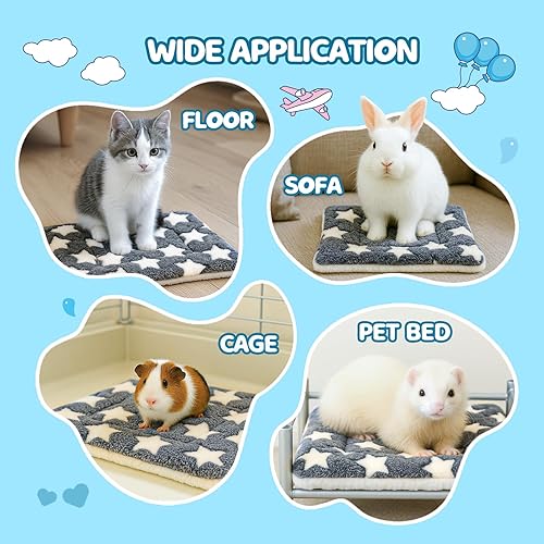 【Quantity & Size】The package contains 2 pieces of soft fleece bed mats with the size of 13''L x 10''W. They are designed for rabbit, and also suitable for other small animals with the size of 8-10 inch, such as hamster, rat, guinea pig, rabbit, and etc. The quantity is sufficient to meet your pet’s daily use and replacement