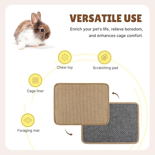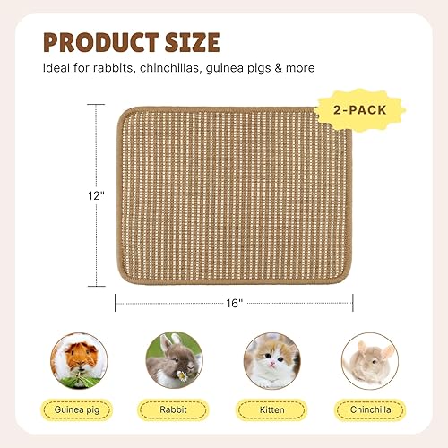 PAW PROTECTION CAGE MAT: Soft, woven fibers create a comfortable barrier between your rabbit’s paws and hard wire cage floors, helping to ward off sore feet and swelling