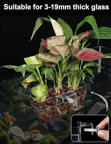 【SIZE & AQUASCAPING】The pot measures 3.15 x 3.15 x 2.25 inches, and the holder adjusts to glass thicknesses up to 0.8 inches. Easy to install and good for growing trailing vines, ribbon plants, aquatic ferns, water lilies, and floating greens. A thoughtful gift for fish tank lovers