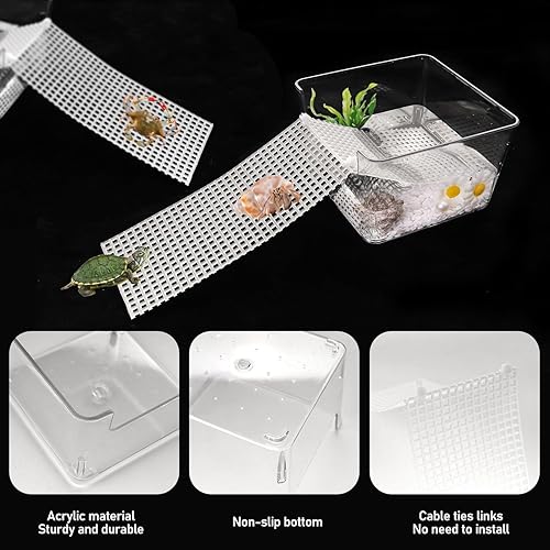 Ideal ecological environment The habitat includes 1 climbing ramp and 8 zip ties, allowing hermit crabs to move in and out with ease, enhancing their activity. The adjustable climbing ramp can be trimmed to fit different tank layouts, supporting natural movement and activity