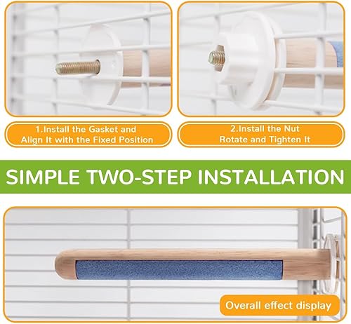 【EASY TO INSTALL IN SECONDS】Designed for universal compatibility, this perch easily attaches to most bird cages with the included metal screws. No tools required—simply twist to secure and adjust the desired angle for your feathered friend.