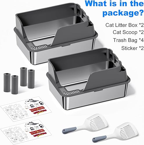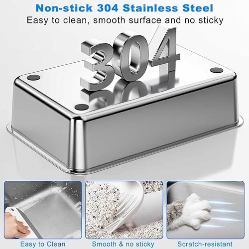 Non-stick Stainless Steel Material: Crafted from qualified stainless steel, this stainless steel cat litter box resists rust, scratching, and wear, ensuring longevity. The design of the side open design feature of the stainless steel litter box with high sides, no matter where you place it in your home, it is convenient for your kitten to enter and exit