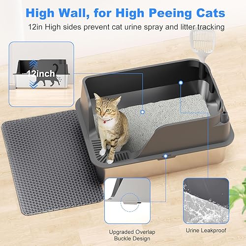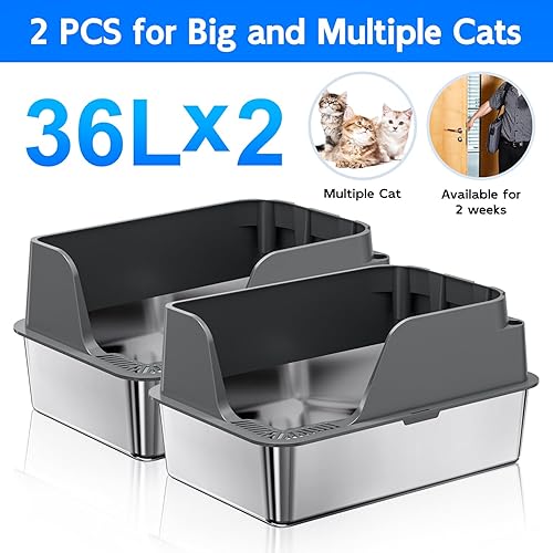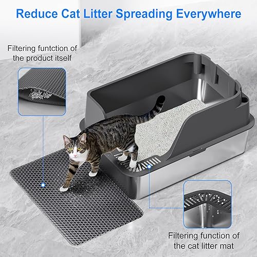 Extra Large Size: The XL cat litter box is made of a stainless steel box + PP lid, measures 23.6x15.9x12 inches(L*W*H) with plenty of space for the cat to move around freely, and the 6-inch litter box depth can hold enough litter