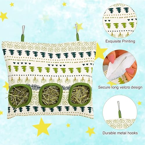 Durable Hay Feeder Guinea Pig: Made from sturdy fabric, this hay feeder ensures long-lasting use; The three-hole design allows easy access to hay for guinea pigs and rabbits; The beige and green colors blend well with any cage decor