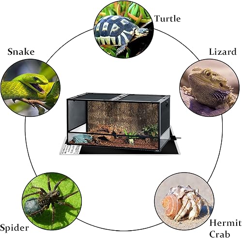 PROVIDE IDEAL 24 HOUR HEAT: Reptile heating pad suitable for all kinds of glass fish tank, turtle tank bottom, plastic boxes, acrylic boxes and reptile wooden boxes.It Ideal for use turtles, snakes, lizards, spiders, reptiles, etc and keep reptile tank warm without any harm to your pets