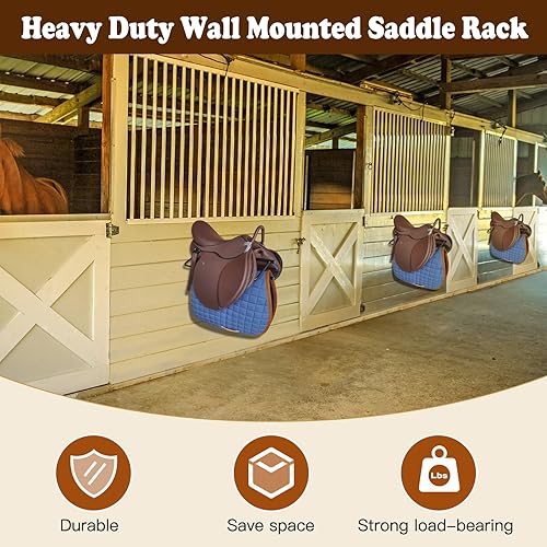 Wide range of use capabilities:This wall-mounted saddle holder effectively prevents direct exposure to dust and eliminates the need for floor space, thereby maintaining the cleanliness and dryness of the saddle. Suitable for use in stables, barns, utility rooms, or other settings, it provides convenient organization of equestrian equipment andoffering flexible features according to your needs.