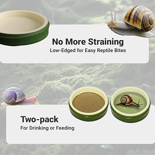 2.【Versatile 2-Pack Set】-Two dishes per order. Use one for snail food, the other as a reptile water bowl, or place multiple reptile food dishes in larger enclosures. Great value and convenience.
