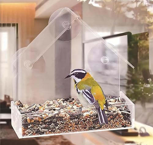 High Quality Window Bird Feeders - Made from high-quality acrylic, the bird feeder on window is built to withstand harsh outdoor elements. Its protective roof design shields bird food from rain and snow, allowing birds to feed comfortably year-round.The design of the appearance is not only beautiful but also easier to observe.