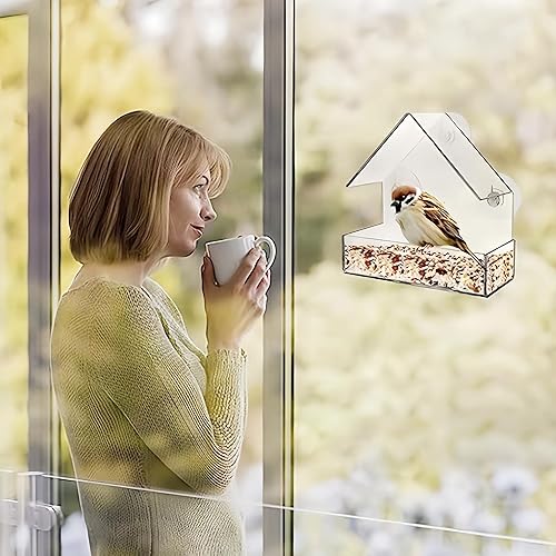 Enjoy the Beauty of Bird Watching - The window bird feeders are made of clear plastic materials which providing clear vision for watching birds up close inside house. The transparent design helps birds quickly locate food while letting you observe orioles, finches, and cardinals and other species within inches of your window–perfect for nature education and pet entertainment.