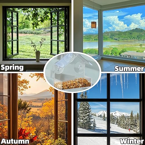 Effortless Installation with Strong Suction Cups - Our clear window bird feeder comes pre-assembled, allowing you to install it in a few minutes, absolutely hassle-free! Equipped with 3 upgraded suction cups, the clear window bird feeder for viewing stays securely in place, even in harsh weather.