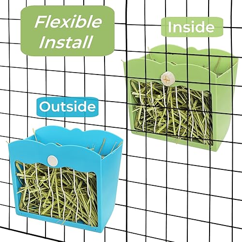 Easy to Install: Come with metal grate and adjustable knob, our grass feeder only take 2 steps to install, easy to use. First, follow the grove on both sides to insert the grate, and then fix the holder on your hutch by screwing knob. You can install them outside, inside, or wherever you prefer on hutch.