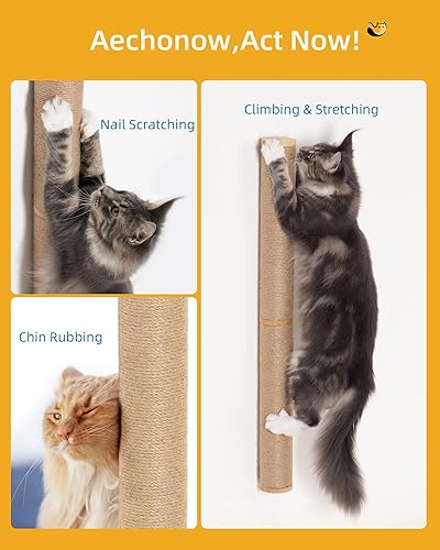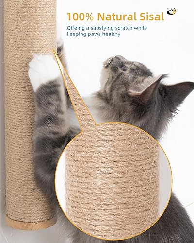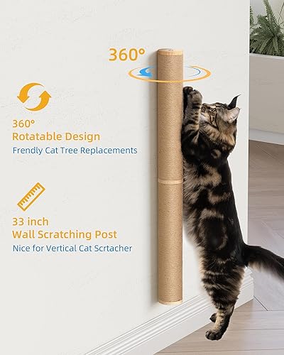 Stretch, Scratch & Rub Cheeks: This 34'' tall, 3.35'' diameter wall mounted cat scratching post is perfect for most (small, medium and large) cats like maine coon to fully stretching, rubbing cheeks, climbing and scratching