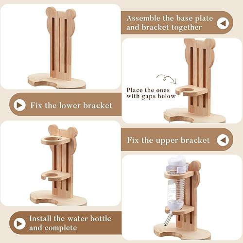 Adjustable Water Bottle Stand for Comfort: the hamster water bottle stand measures 7.8 inches high and 6.5 inches wide and carries a water bottle capacity of 4.2 ounces; The height of the stand is adjustable to cater to pets of varying heights or sizes, enhancing your pet's comfort as they hydrate; No tools are needed for installation, making setup a breeze