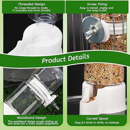 【AUTOMATIC WATER FEEDER】Bird drinker adopts gravity flow design, automatic water feeding and feeding, ensure the continuity of food and water. Reduce daily feeding workload, easy to feed. You don't need to worry about your bird's thirst even if you are not at home all day.