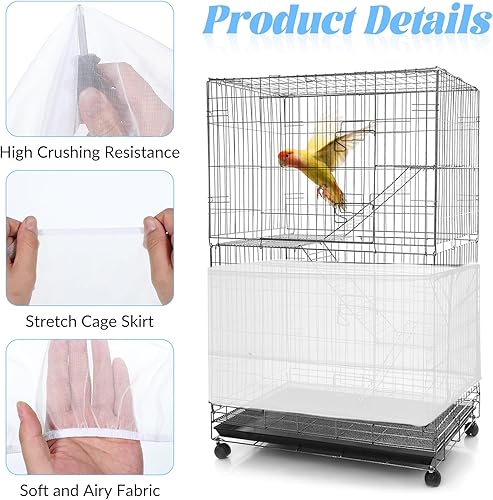2 PCS Bird Cage Seed Catcher Airy Gauze Bird Cage Cover White Birds Cages Net Cover Guard Net Adjustable Stretchy Birds Cages Netting Universal Birdcage for Parrot Enclosures Round Square