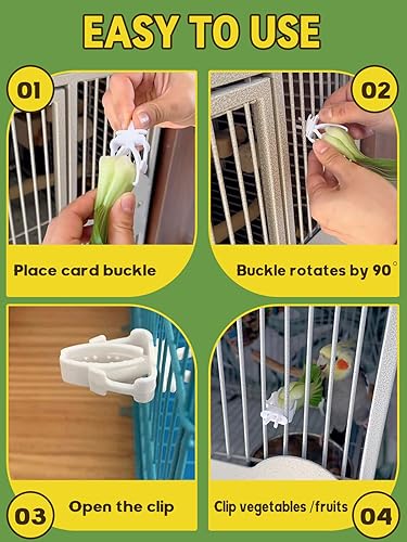 Package and Size: Including 2 pack ceramic bird feeder and 2 plastic feeding clips. The bird bowls size about 2.95 x 1.96 inch / 7.5 x 5 cm. This bird feeding cups meet your pets' dietary needs and are great cage accessory components. These bird food clips can holder fruits,vegetables and other little treats for bird and small animal