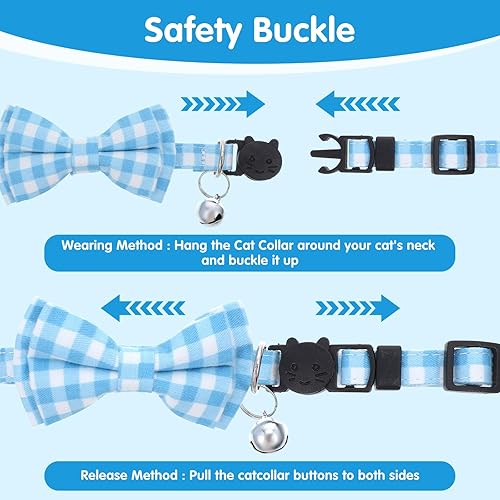 Elegant Design: Featuring a removable bowtie, these boy kitten collars offer a touch of elegance for various occasions. The blue plaid pattern adds a fashionable flair, perfect for daily wear and special events.