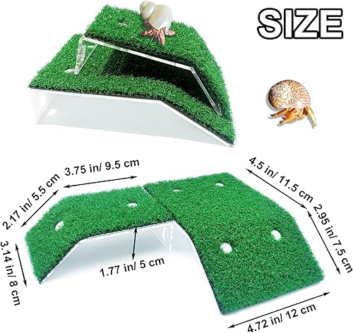 Package Include: You will receive 2 pcs turtle basking platform with double suction cup come in two different sizes, the small size measures approx. 5.11" L x 3.14" W x 1.77" H, medium size measures approx. 7.08" L x 4.72" W x 1.77" H, you can use them in combination according to the size of your pet and hermit crab tank.