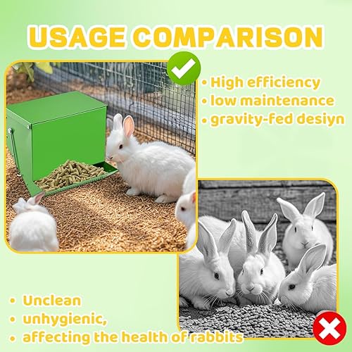 Unique design:Our Rabbit Feeders for Cages are designed with a top cover to protect food from dust and debris and a mesh base to prevent water from pooling and keep food dry and fresh