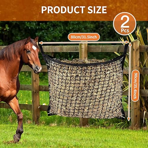 【Wide Applications】 Slow feed hay net is specially designed for storing hay and feeding horses, which is a good tool for you to use and helps reduce hay loss; At the same time, it can also be applied as a practical gift to family and friends who have horses, goats and other animals