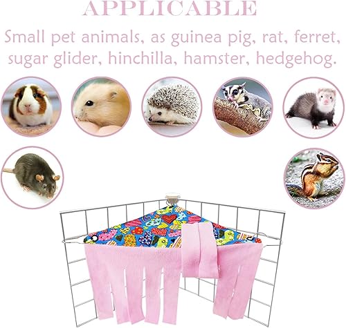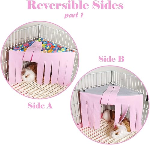 CUTE DESIGN: These 2 pieces guinea pig corner hideouts can provide a safe and funny place for them to hide and play. Your pet will love hiding, running and playing through the flannel tent. It can also be a great hammock for them to sleep. You can see the cute face of your pet at any time through the gaps in the curtains.