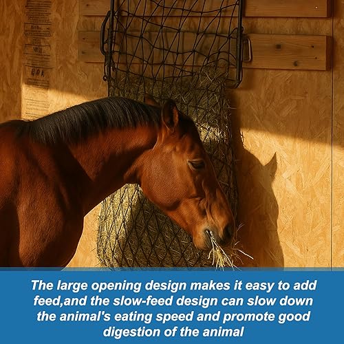 Size Information: constructed with detail and precision, the hay feeder frame measures around 18.03 x 12.99 inches/ 45.8 x 33 cm, Its paired hay net is about 40.16 inches/ 102 cm, ; This minimizes the chances of your horse swallowing excessively and slows the eating rate, counteracting stomach issues, curbing indigestion, and promoting healthier feeding habits